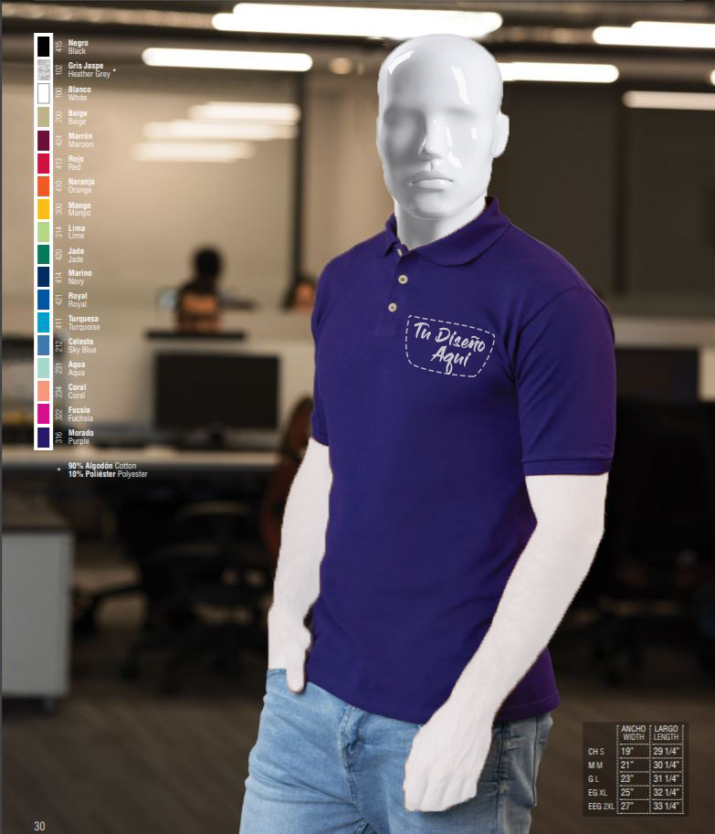 Playera Personalizada manga Corta y Cuello en V para Caballero 100% Algodón El estampado corresponde a una hoja tamaño carta.